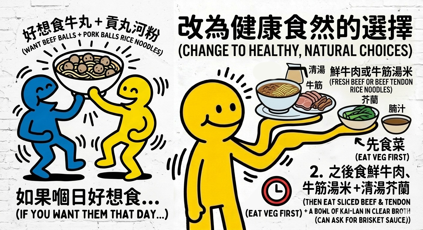 希望以上全新嘅「欺騙大腦飲食法」可以幫到大家,食一啲相對比較肥膩啲,或者多添加劑嘅嘢食之前,可以容許自己停一停諗一諗,用少少相對健康啲嘅食物嚟到對沖一下,咁樣對身體嘅影響唔單止會少啲,亦都會瘦得快啲㗎。