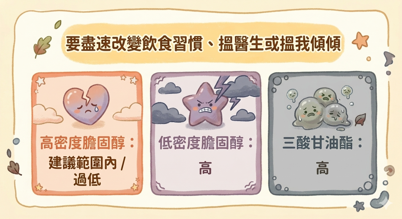 Kay建議大家,如果低密度膽固醇 + 三酸甘油酯都高,咁就要:
