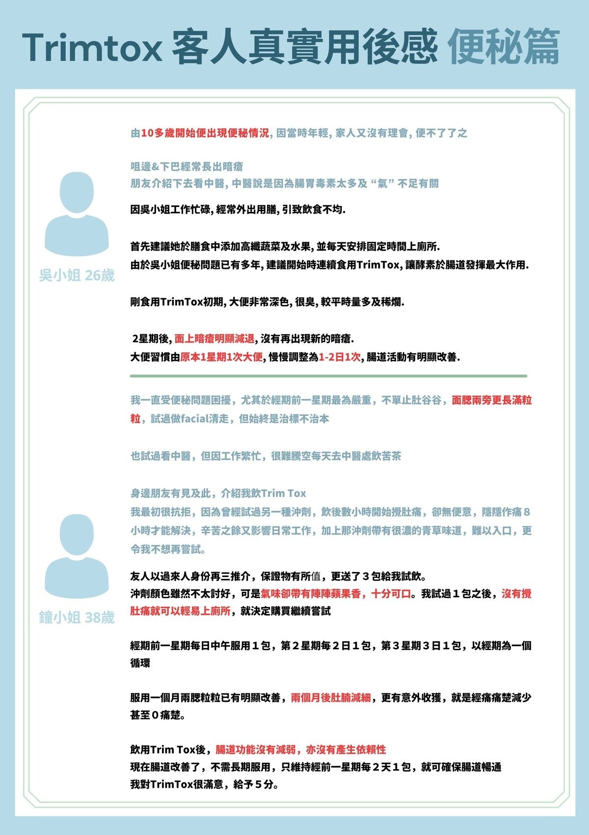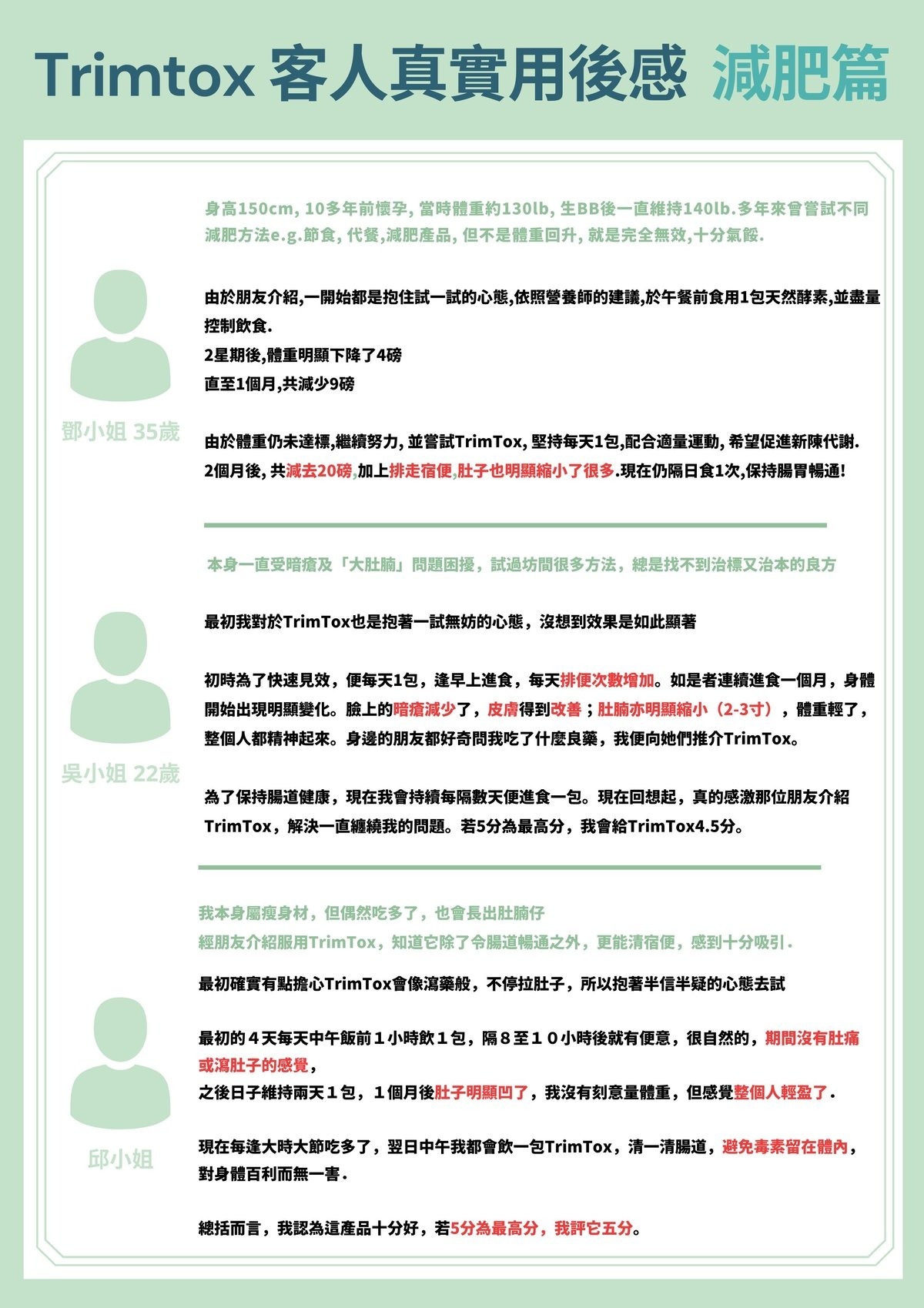 即日活腸宿便全清,不再肚谷 > 7天精神奕奕,不再易攰 > 14天體重減輕,燒脂消腩