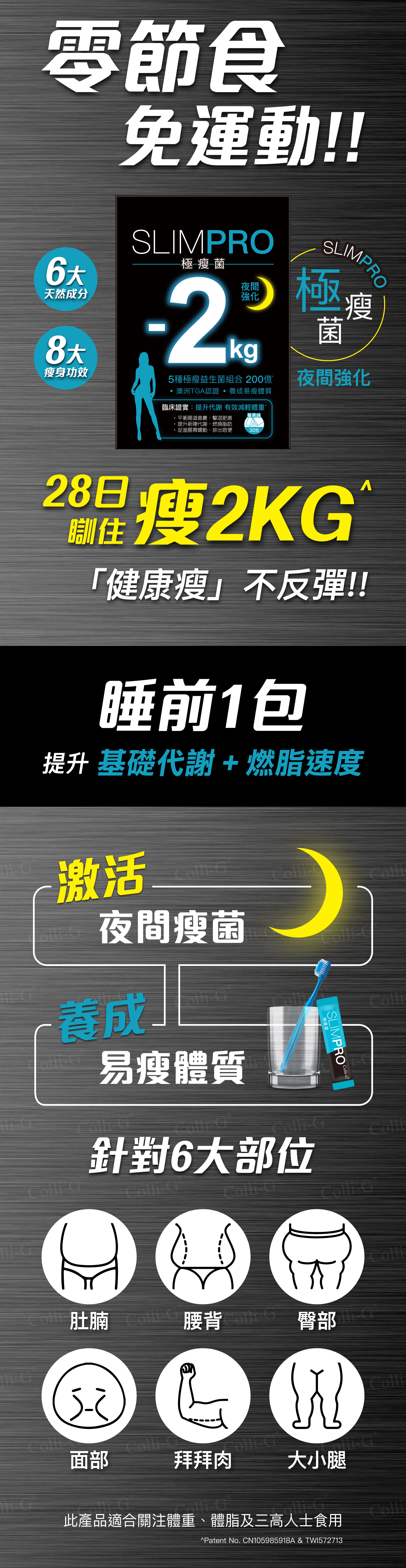 主要成分:SLIMPRO 5種專利極瘦益生菌組合