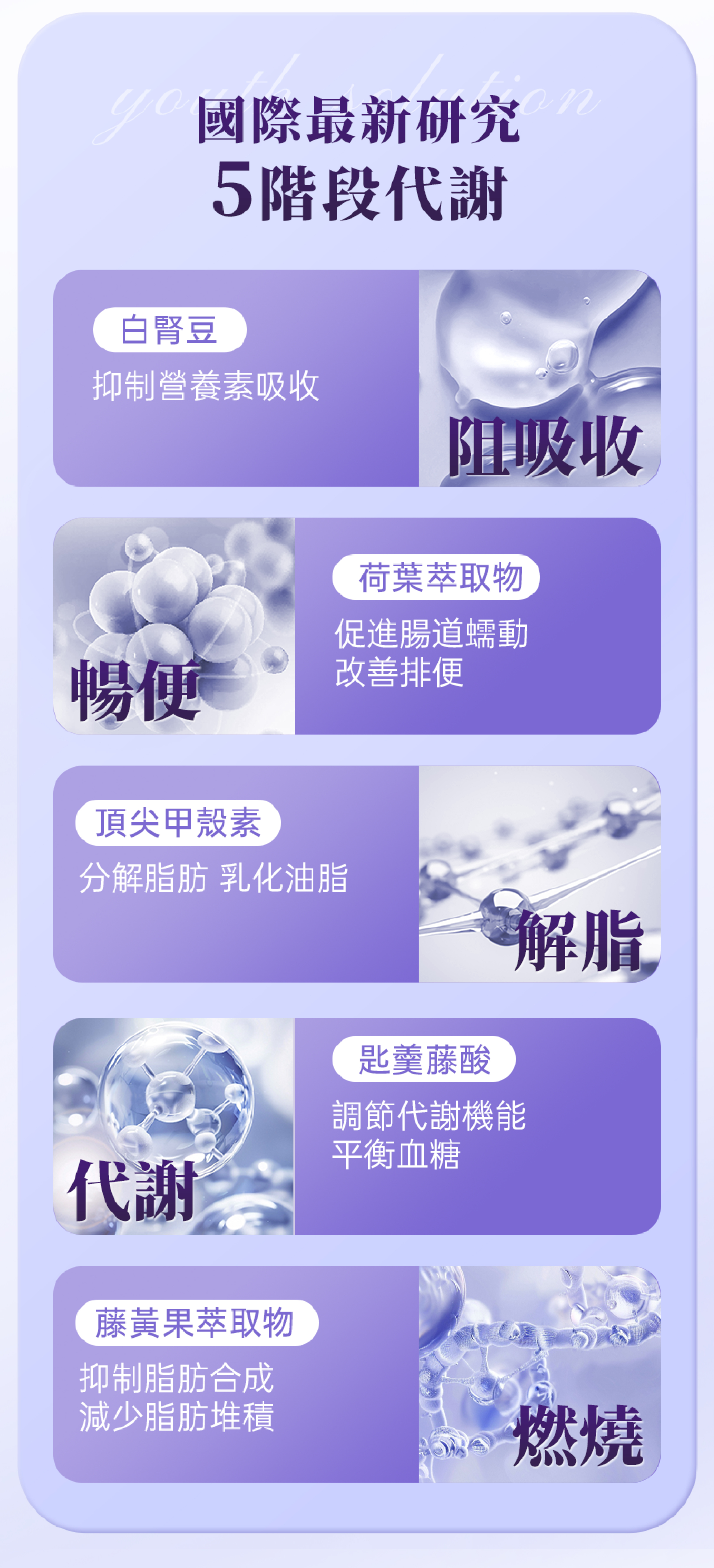 2. 解脂:幫助分解體內多餘脂肪,減少脂肪堆積。